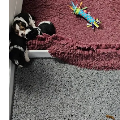 We begin training pups to a special litter box at 3 weeks of age. Our hope is that they are very close to being fully potty trained at 10 weeks of age when they go home!